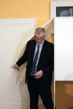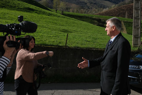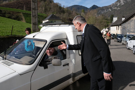 France - Lourdios Icheres - Vote of candidate Jean Lassalle, Resistons movement, in his commune of Lourdios-Icheres (Pyrenees-Atlantiques).