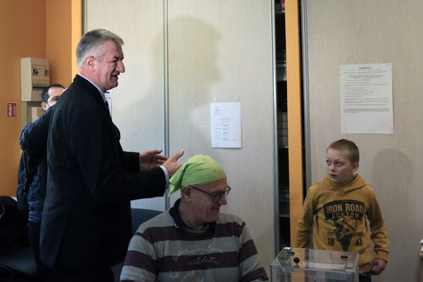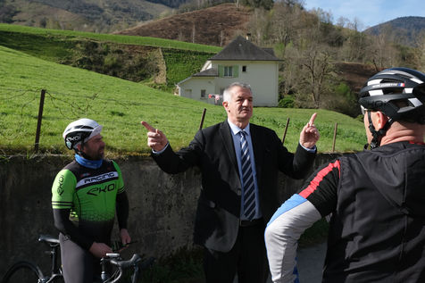 France - Lourdios Icheres - Vote du candidat Jean Lassalle, mouvement Resistons, dans sa commune de Lourdios-Icheres (Pyrenees-Atlantiques).
