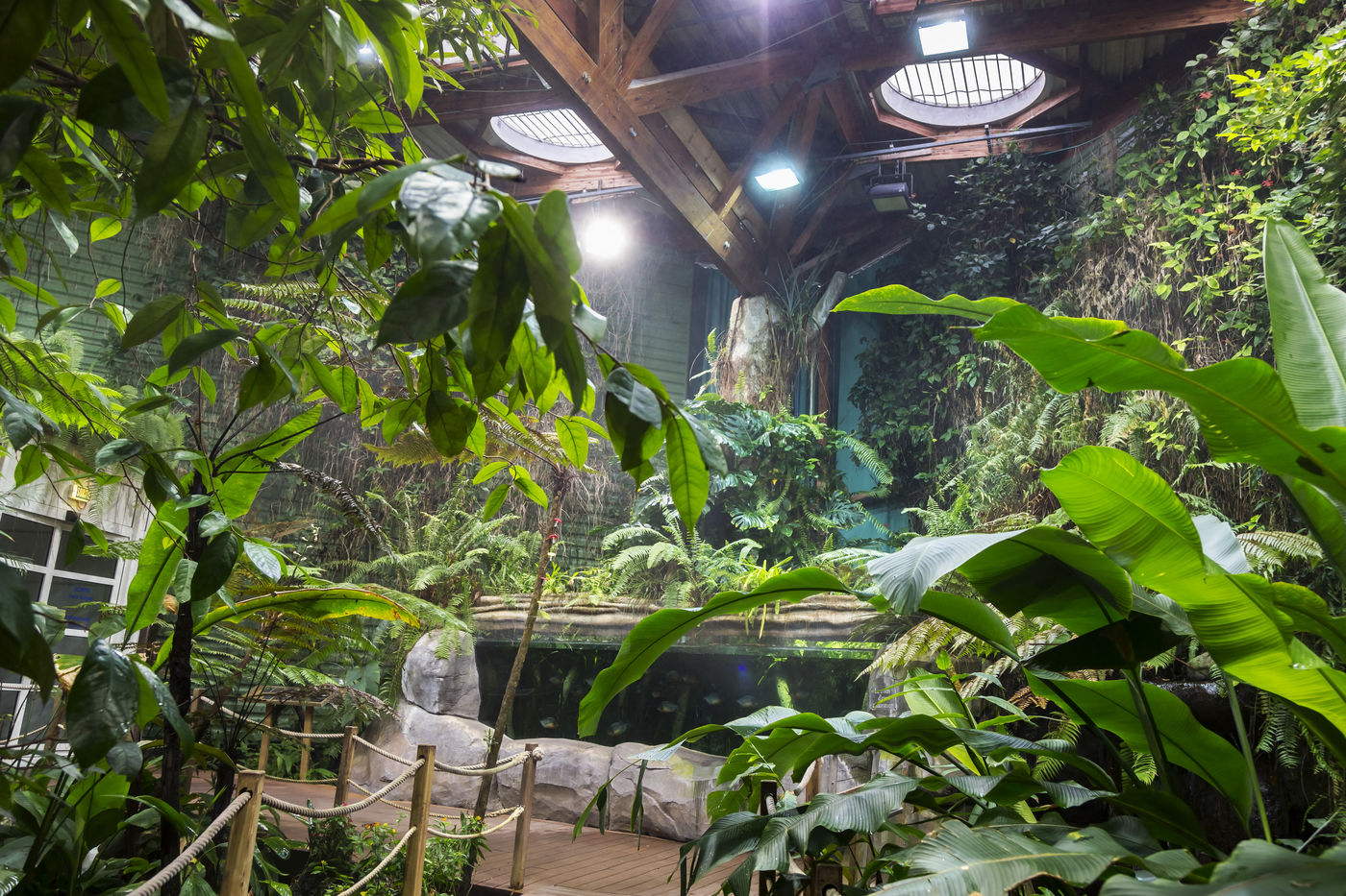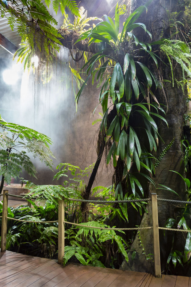 Ah, le bain de vapeur et le vénérable fromager à l'écorce de ciment dans la serre tropicale ! Couleur locale !