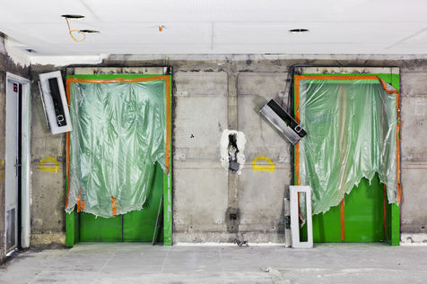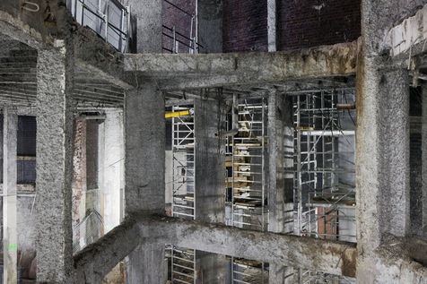 Ces lieux de paradoxe tout entier façonnés de la main instrumentalisée de l'homme ne comportent bizarrement aucune présence visible, en dehors des traces d'une occupation passée pour les bâtiments en attente d'une rénovation, de l'outillage et des objets très provisoirement stockés ou laissés par les différents corps de métiers ou du dépôt de poussière qui sont autant de témoignages d'une activité en cours. Hôpitaux, plateaux de bureaux, administrations, logements... ils seront nombreux à sy presser demain. Nous sommes en milieu urbain, le tertiaire y a assis depuis longtemps sa suprématie.