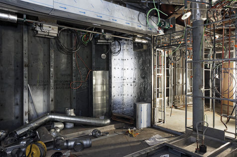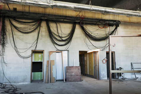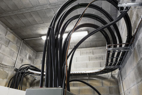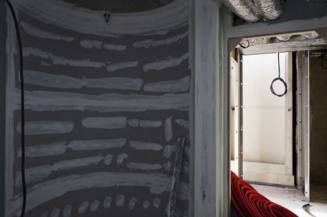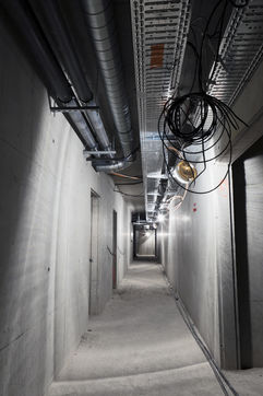 C'est dans le cadre d'une campagne photographique de longue haleine pour le Groupe SNEF, entreprise internationale basée à Marseille et spécialisée entre autres dans le génie électrique et climatique, que j'arpente ces édifices en construction que l'on nomme chantiers. Mais pas n'importe quand. A ce moment où, mis à nu, écorché, l'espace est en attente d'un achèvement. Tripes à l'air. Il faut bien l'innerver, l'irriguer, l'alimenter pour son usage prévu avant que le placage et la décoration intérieure ne dissimulent la nature organique de ce travail.