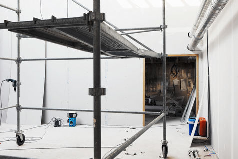 These places of paradox entirely shaped by the instrumentalized hand of man strangely do not include any visible presence, apart from the traces of a past occupation for the buildings awaiting renovation, the tools and objects very temporarily stored or left by the various trades or the deposit of dust which are so many testimonies of an activity in progress. Hospitals, office buildings, administrations, housing... there will be many of them tomorrow. We are in an urban environment, the tertiary sector has long since established its supremacy.