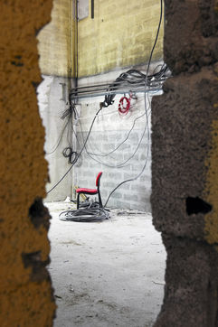 An expectation is an object intended to receive a complement, thus this love of cable, this sheath in projection or in its trench, these sections of pipes in the acid and slightly acrid dust of the fresh concrete. But these "waits" do not fail to convene the question of the duration. The wait, in these transitory spaces, it is also a suspension, a stop in the course of the time. In the manner of the photography of which we know that it does not raise of an ordinary time in its way of trapping the space.