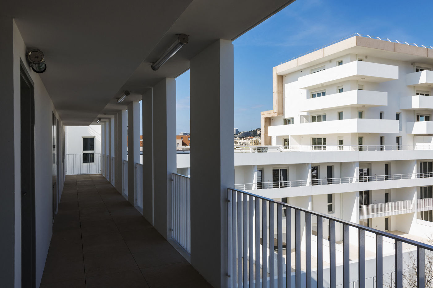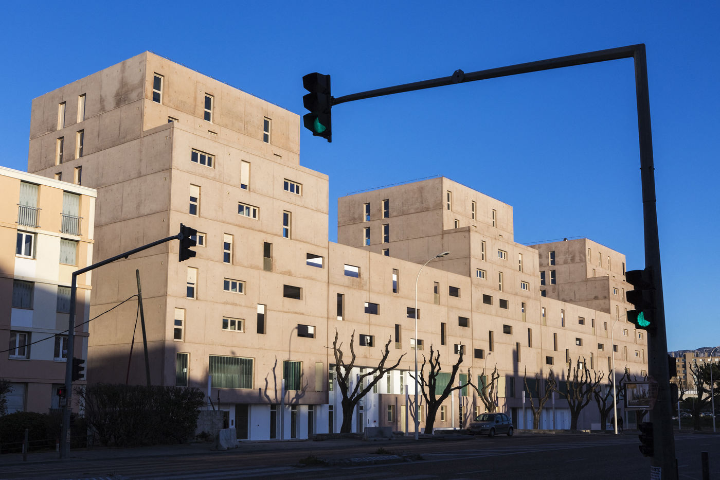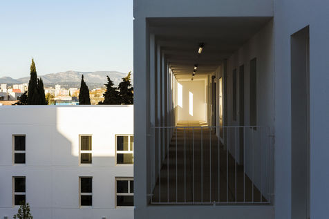 Dans le cadre de l'opération de rénovation urbaine et architecturale du quartier Schloesing à Marseille, non loin du Vélodrome, la Société Nationale Immobilière m'a confié le suivi photographique de la construction de l'ensemble de logements "Les rives de l'Huveaune" d'après les plans de l'atelier d'architecture Bouillaud & Donnadieu.