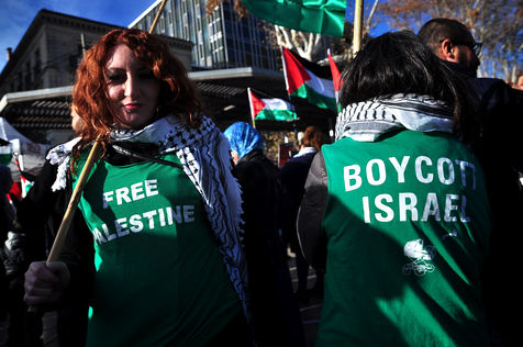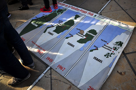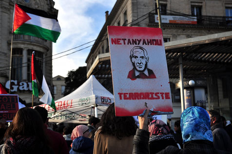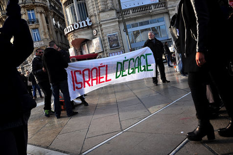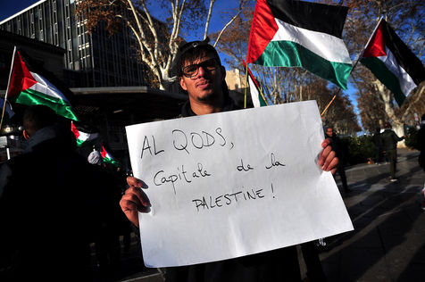 A Montpellier, place de la comédie, des membres de Boycott Desinvestissement Sanctions, une association pro-palestinienne, manifestent contre cette décision avec ce slogan : Touches pas à Al Qods (Jerusalem en arabe). Mais comme à chacune de leur sortie, ils seront sommés par la police d'évacuer les lieux.