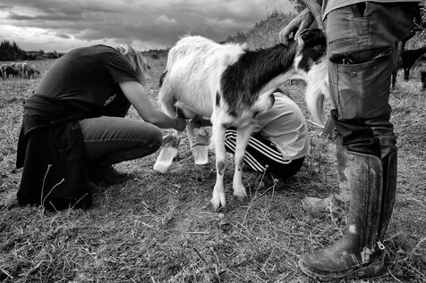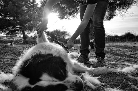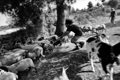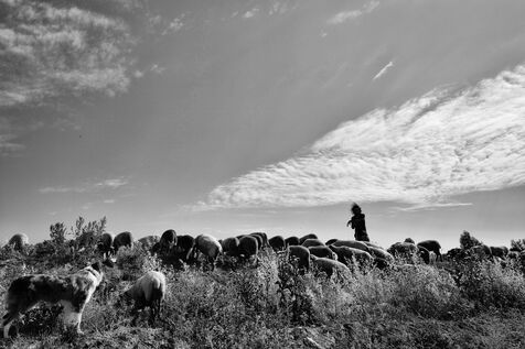 While waiting for the freshness of the Savoyard mountain pastures which are fast approaching, Christophe and Jessica, breeder of goats and sheep, reds from Roussillon, move their herd to the various pastures around Villeveyrac, a small town in the Hérault region.