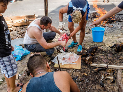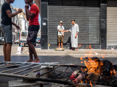 The festival commemorates Ibrahim's (Abraham) sacrifice. Every family sacrifices a sheep, sometimes a cow when the family is affluent enough. During the weeks before the event, sheep and coal vendors can be found everywhere in the city, especially in the old medina which gets even busier than in normal time. During the festival, every housing block gets organized: every street corner gets its own barbecue. Most of the time, teenagers are in charge of the barbecues, which is also an opportunity for them to get some pocket money. Butchers can be seen walking on the streets: some families don't do the sacrifice themselves and would rather resort to their services. Sheep skins are also collected, even if now, in big cities, most of them are simply thrown away with garbage.
