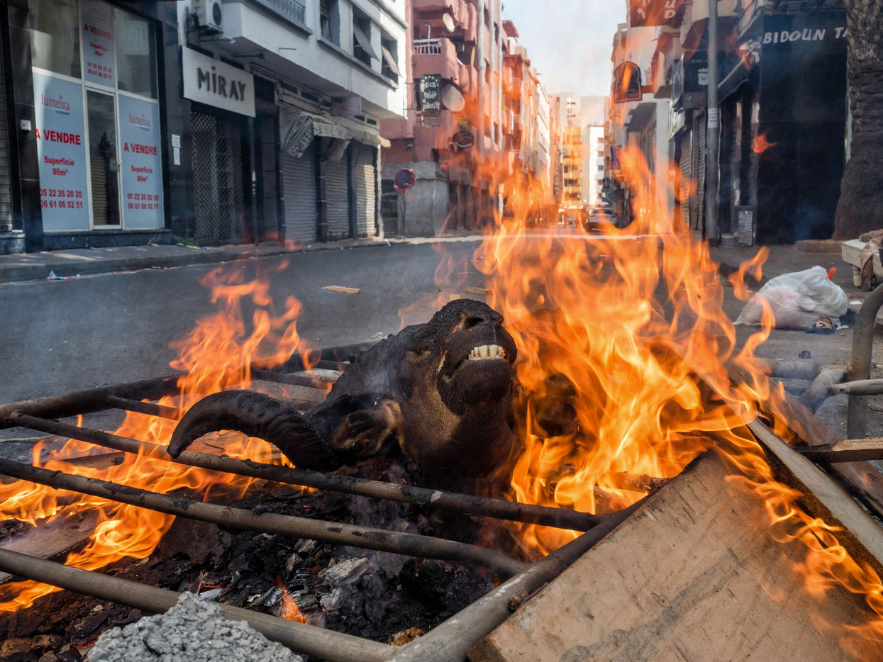 La fête commémore le sacrifice d'Ibrahim (Abraham), et chaque famille sacrifie un mouton, voire une vache pour les plus aisées. Dans les semaines précédant la fête, les préparatifs sont intenses et les vendeurs de moutons et de charbon apparaissent à chaque coin de rue, en particulier dans l'ancienne médina. Pendant la fête, chaque quartier s'organise, avec la construction de barbecues dans les rues, souvent tenus par des adolescents pour lesquels ce travail est aussi l'occasion de se faire un peu d'argent de poche. Les bouchers sillonent les rues : certaines familles ne procèdent pas au sacrifice elles-mêmes mais préfèrent recourir à leurs services. La collecte des peaux est également organisée, même si maintenant, dans les grandes villes, la plupart sont jetées.