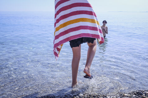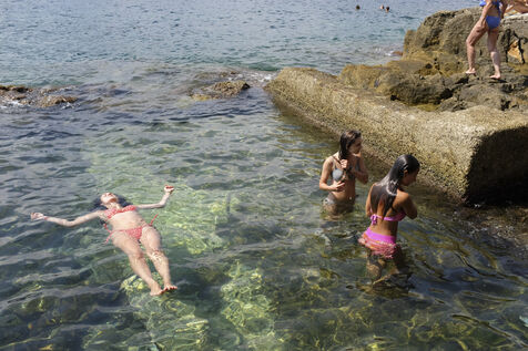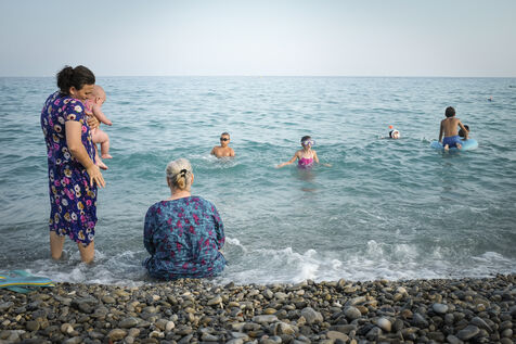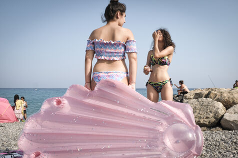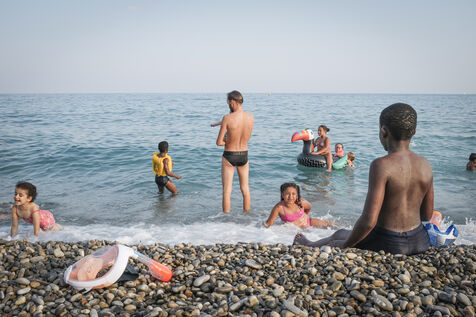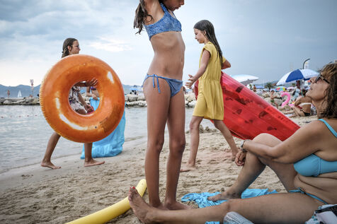 Even if invisible borders separate the aligned deckchairs from the private beaches, from the disorderly and colourful territory of the public beaches, children and adults indulge in the same joys, the same excesses.
