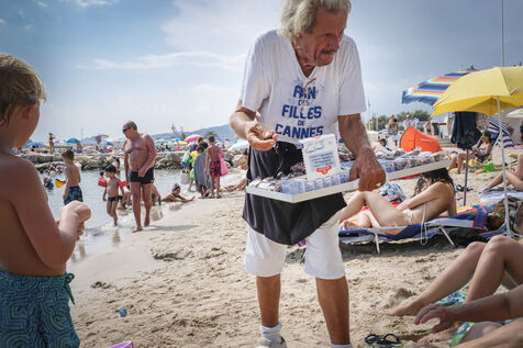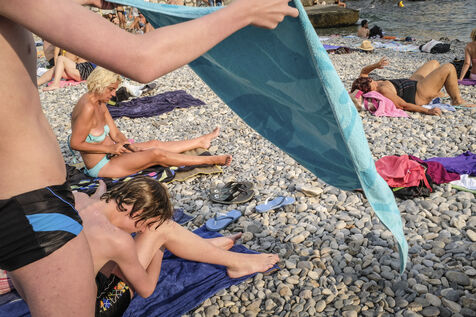 De Beaulieu sur mer à Cannes la Croisette, noms porteurs d'un imaginaire collectif évoquant tout aussi bien la jet set que le tourisme de masse, se croisent et se mêlent toutes les couches de la société. Ici, durant les mois d'Aout et de juillet, tous se partagent quelques centimétres carré de sable ou de galets.