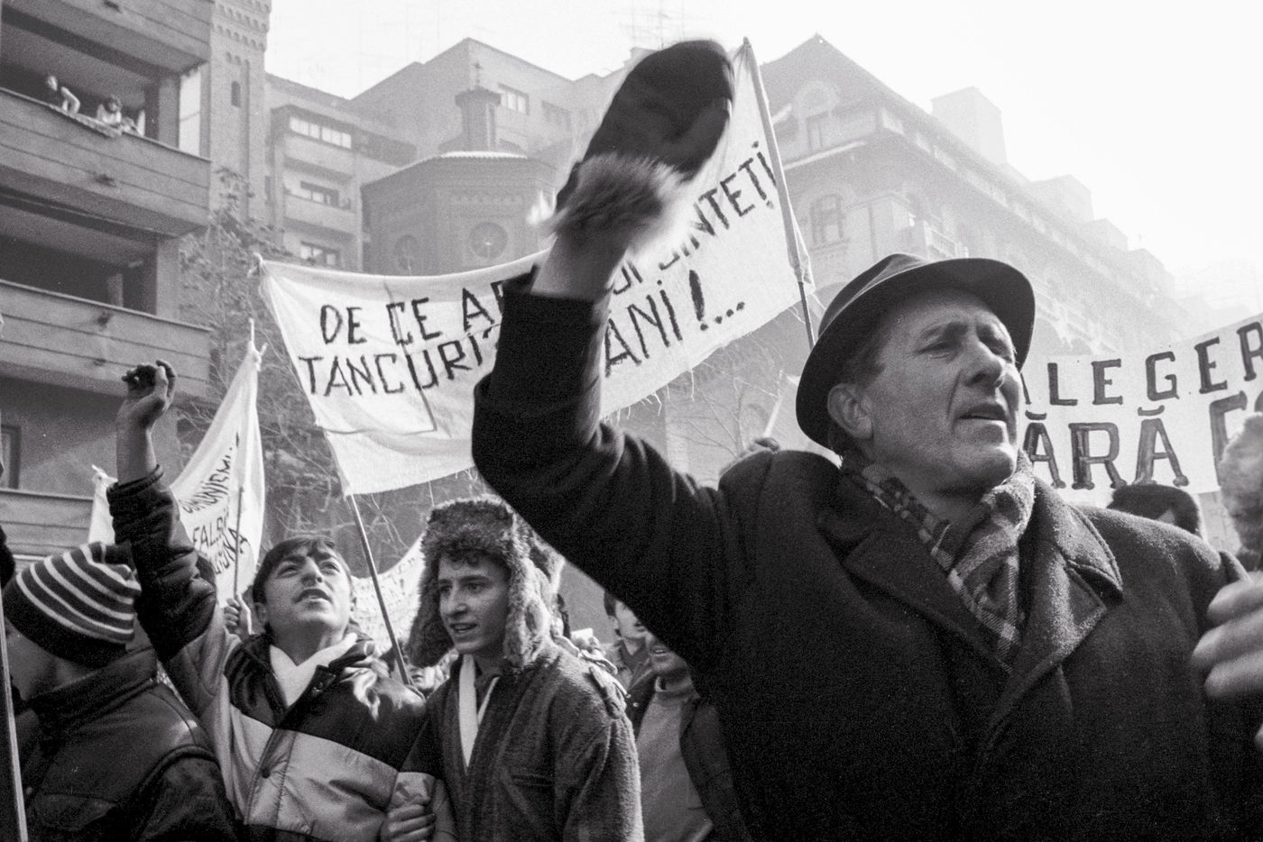 Je découvre une ville détruite et un peuple en liesse dans les rues, agglutinés aux fenêtres des immeubles, hurlant à tout rompre «à bas le communisme » , « à bas le Parti », «mort aux terroristes » sous l'oeil des militaires postés sur des chars immobiles.