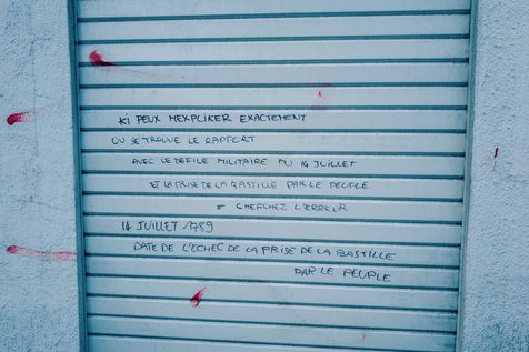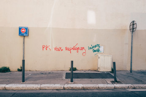 1 year to compile the graffiti, tags, street messages encountered during the year 2018 in Marseille during demonstrations, popular protests or street photography sessions. Non-exhaustive anthology of the beatings of the walls of a city.