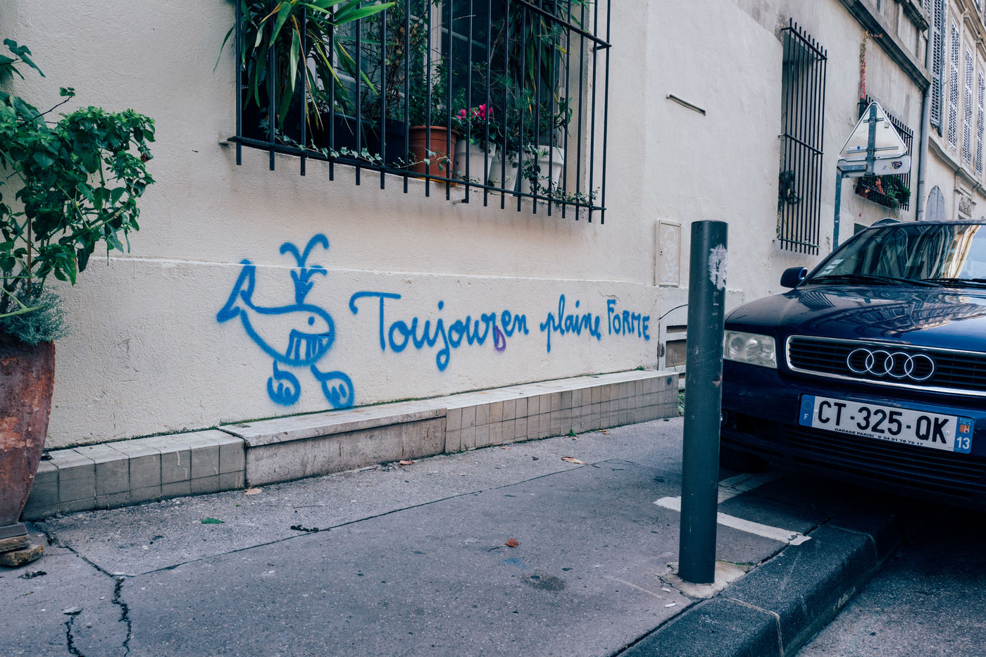 1 an à compiler les graffitis, tags, messages de rue rencontrés durant l'année 2018 à Marseille lors de manifestations, contestations populaires ou sessions de street photographie. Anthologie non exhaustive des battements de murs d'une ville.