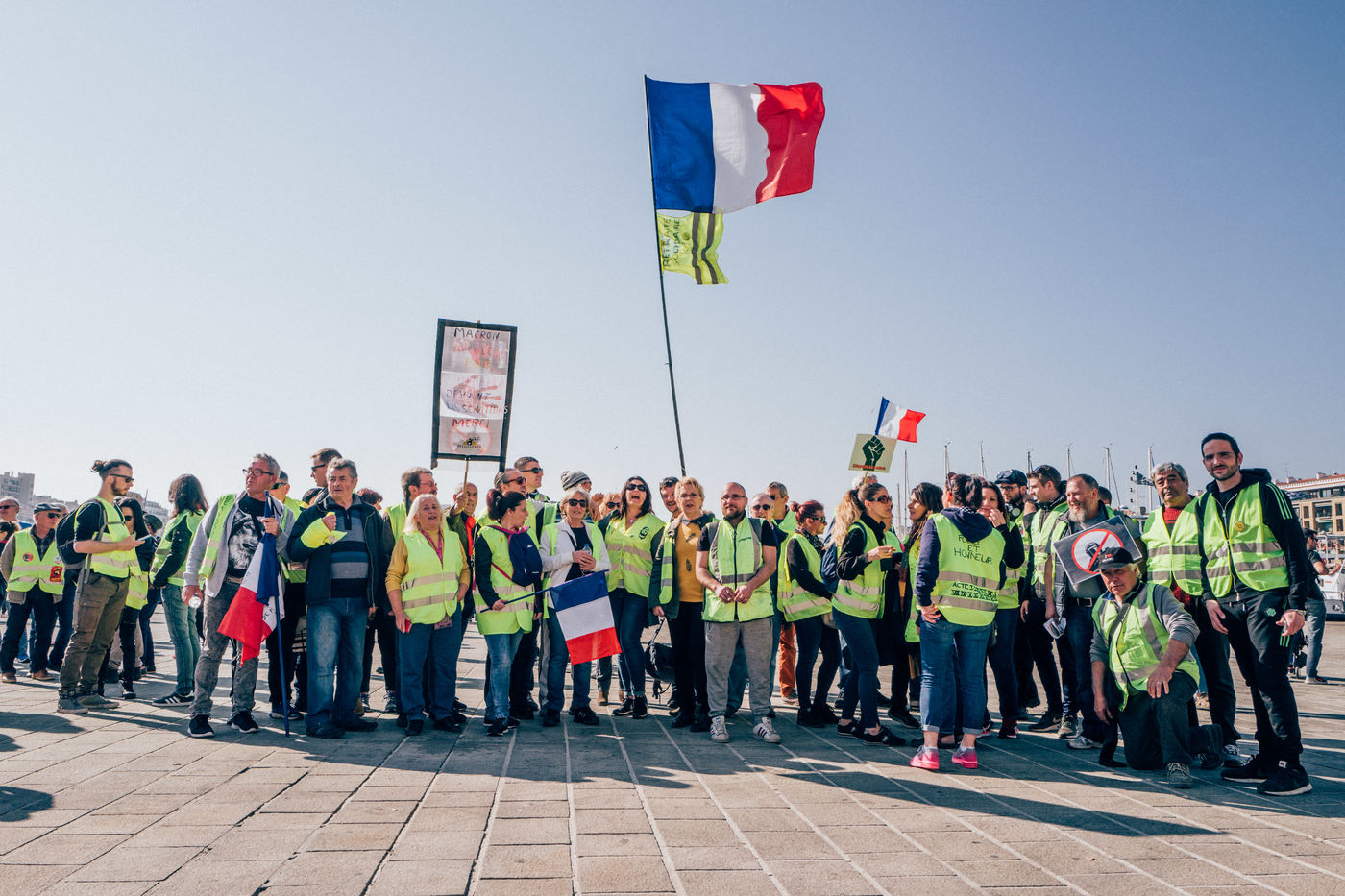 Acte XV des Gilets Jaunes à Marseille. Manifestation se déroulant sans heurts. Mobilisation toujours importante, nombre de retraités encore présents ainsi que de nombreuses mères seules. Beaucoup de visages connus déjà croisés lors des précédents actes.