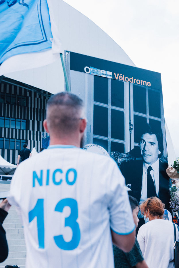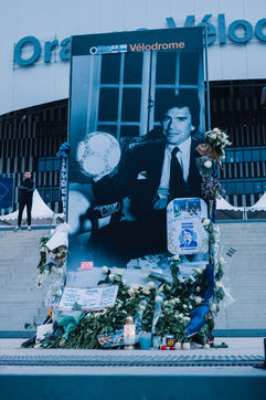 Tribute to Bernard Tapie at the Velodrome stadium, former president of Olympique de Marseille, who died on October 3, 2021.