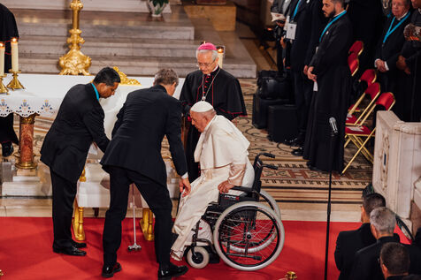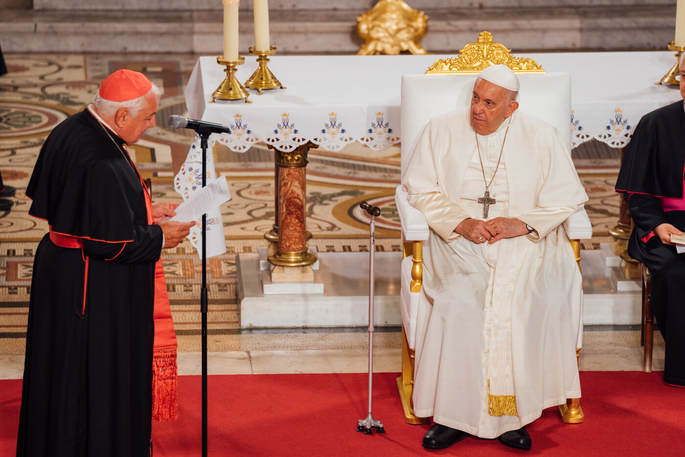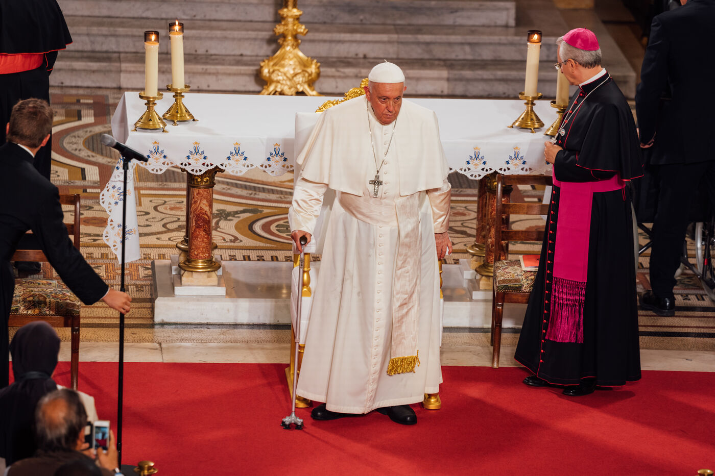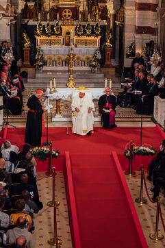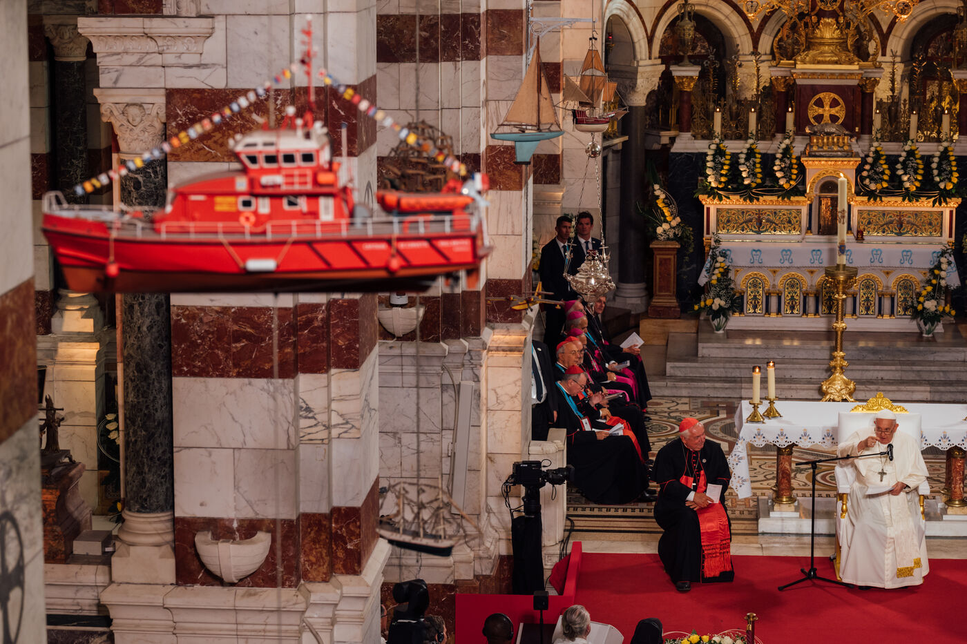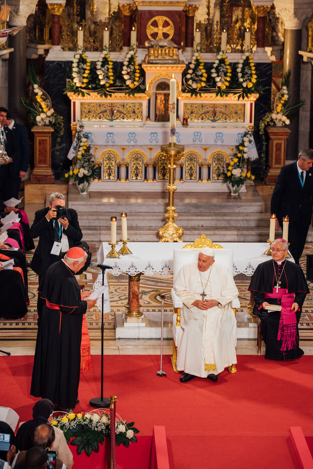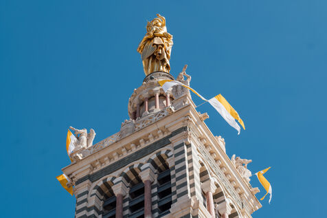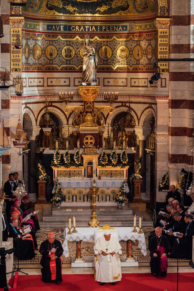 2023/09/22, Notre Dame de la Garde, Marseille. Pope Francis visits the Basilica of Notre Dame de la Garde (the Good Mother) at the invitation of Cardinal Jean-Marc Aveline as part of the Rencontres Méditerranéennes 2023.