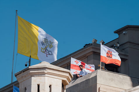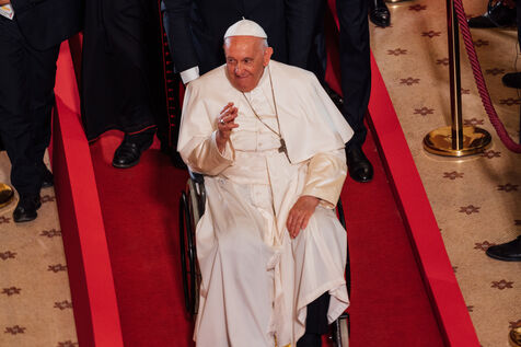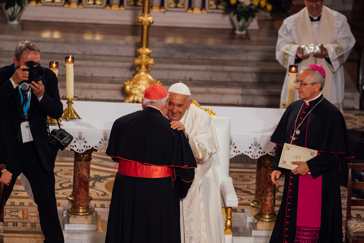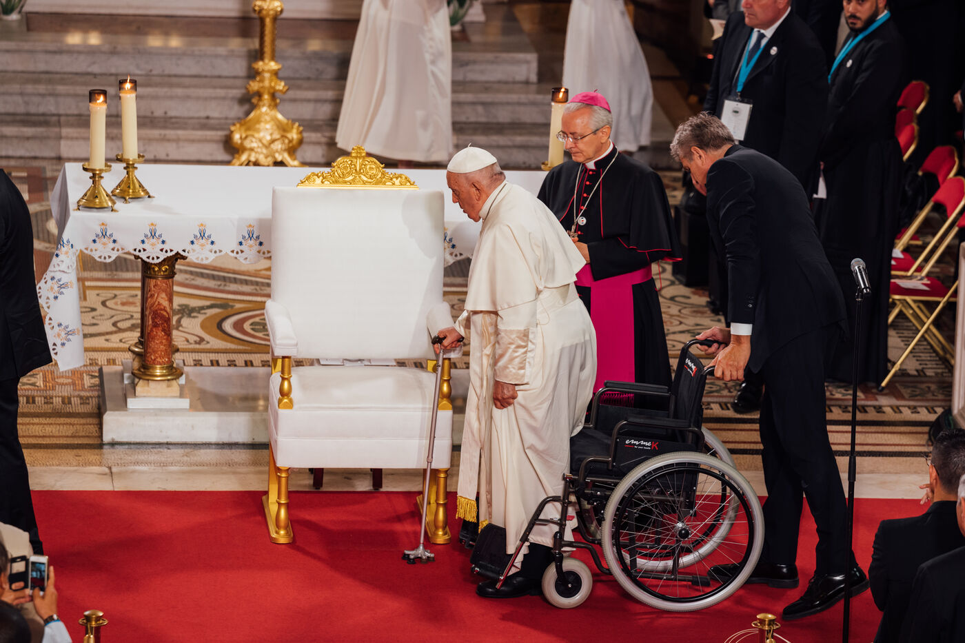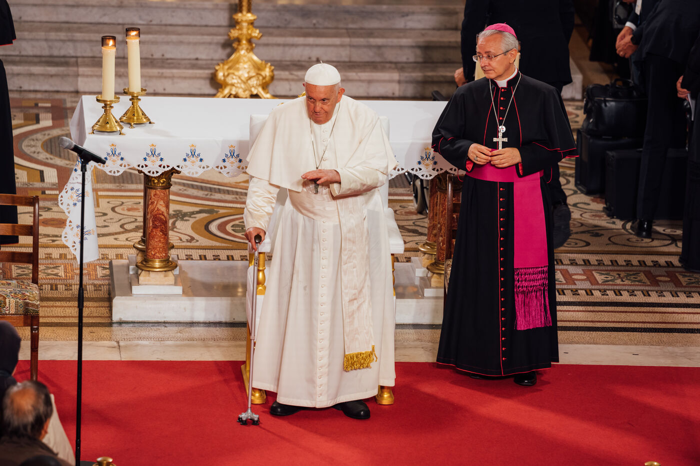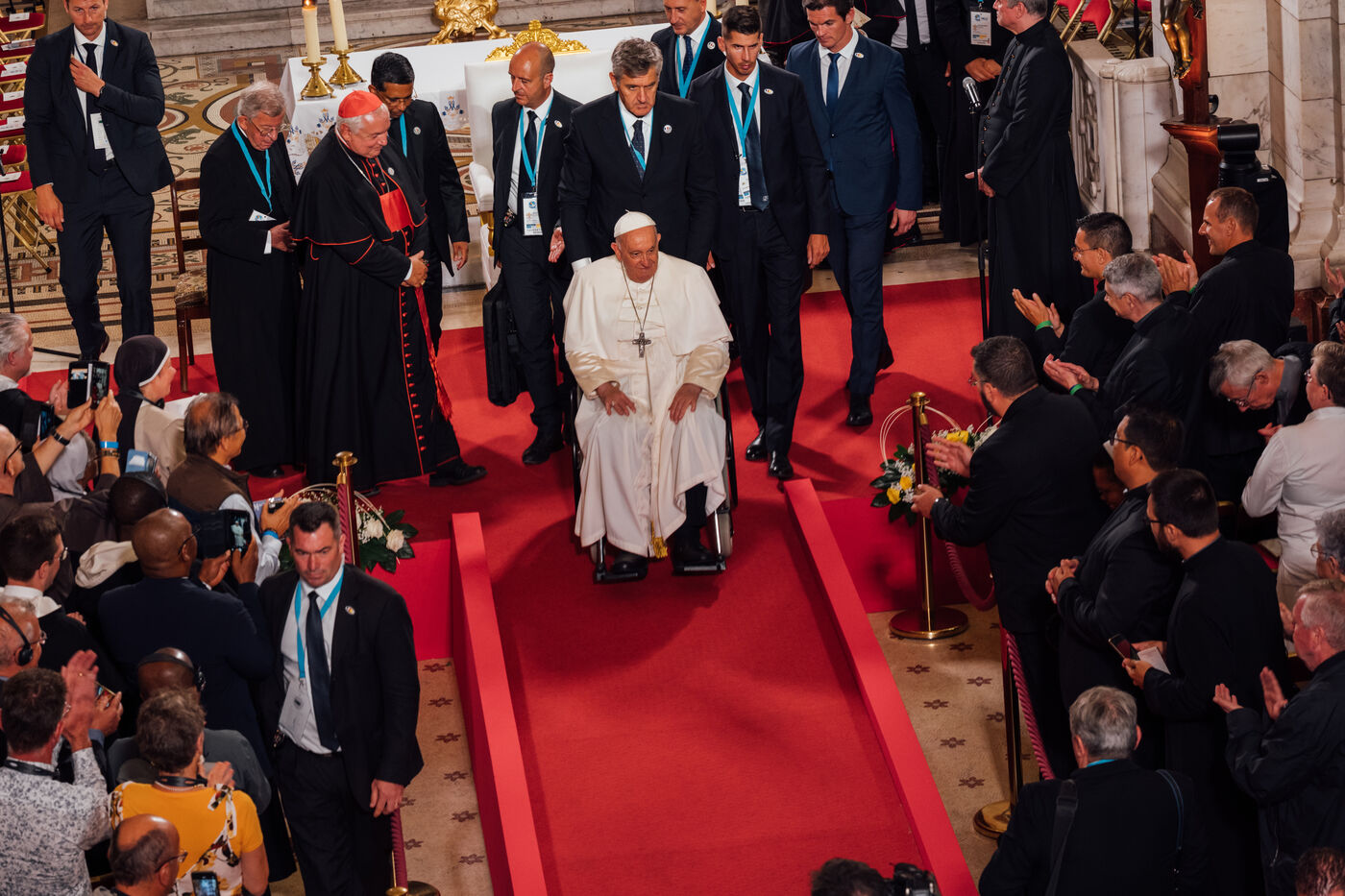 2023/09/22, Notre Dame de la Garde, Marseille. Pope Francis visits the Basilica of Notre Dame de la Garde (the Good Mother) at the invitation of Cardinal Jean-Marc Aveline as part of the Rencontres Méditerranéennes 2023.