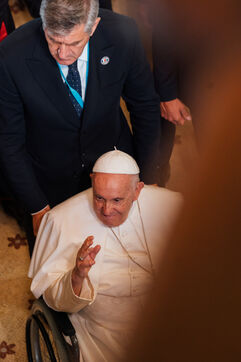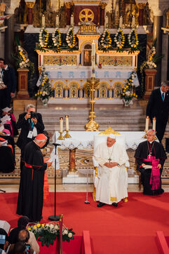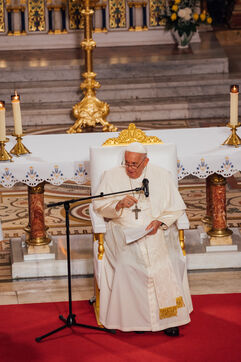 2023/09/22, Notre Dame de la Garde, Marseille. venue du Pape François à la basilique Notre Dame de la Garde (la Bonne Mère) sur invitation du Cardinal Jean-Marc Aveline dans le cadre des Rencontres Méditerranéennes 2023.
