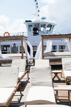 The 1,750 m² trimaran, designed to accommodate 350 people and reserved for events, was inaugurated on Thursday May 16, after a year of political and legal turmoil, and opposition from environmental associations. Canua Island is reserved for events: "weddings, anniversaries, bar mitzvahs, corporate seminars and product launches" cost between €65,000 and €85,000. Between ten and fifteen events are planned for the season, we are assured. All will take place off the Côte d'Azur.