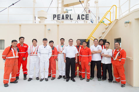 Le Pearl Ace est un roulier de 188m qui sillonne les ports du bassin méditerranéen et d'Europe du Nord pour livrer des milliers de voitures. Chaque mois, le navire fait escale dans le port de commerce du Havre. A bord, ils sont 23 marins philippins et 2 marins japonais.