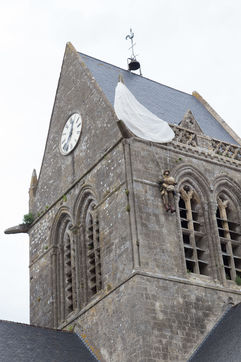 On this 6th of June 2019, in the occasion of the 75 years Anniversary of the D-DAY in Normandy, the French Prime minister, E.Philippe, went to Sainte-Mère-Eglise (Normandy). Handshake, embraces, smiles have been exchange with inhabitants, tourists and servicemen. E.Philippe walked through the village known to be one of the first free ones on June 6th 1944. The Prime minister listened carefully to anecdotes told by its mayor, Jean Quetier. For exemple: The symbol of Sainte-Mere-Eglise is precisely on his Church's roof. A manikin shows John Steele, an american parachutist who stayed stuck on the Church tower on the night of the 5-6th of June 1944.