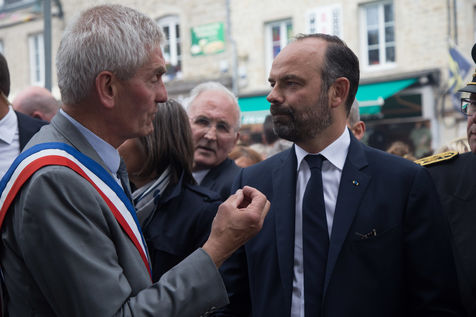 Ce 6 juin 2019, à l'occasion des commémorations des 75 ans du Débarquement en Normandie, le Premier ministre, E. Philippe, s'est rendu à Sainte-Mère-Eglise (Manche). Poignées de main, accolades, sourires ont été échangés avec les habitants, les touristes et les militaires. E. Philippe a déambulé à travers cette commune connue pour avoir été l'une des premières de France libérées le 6 juin 1944. Le Premier ministre a prêté une oreille attentive aux anecdotes racontées par son maire, Jean Quetier. Pour exemple : le symbole de Sainte-Mère-Eglise se situe précisément sur le toit de son église. Un mannequin représente le parachutiste américain John Steele, resté coincé sur le clocher de l'église, dans la nuit du 5 au 6 juin 1944.
