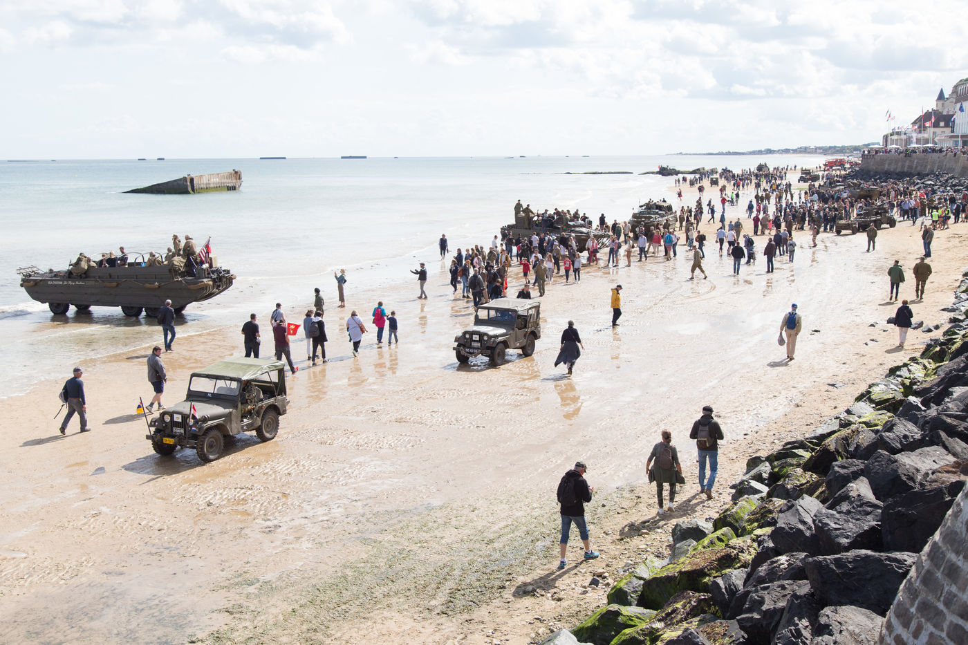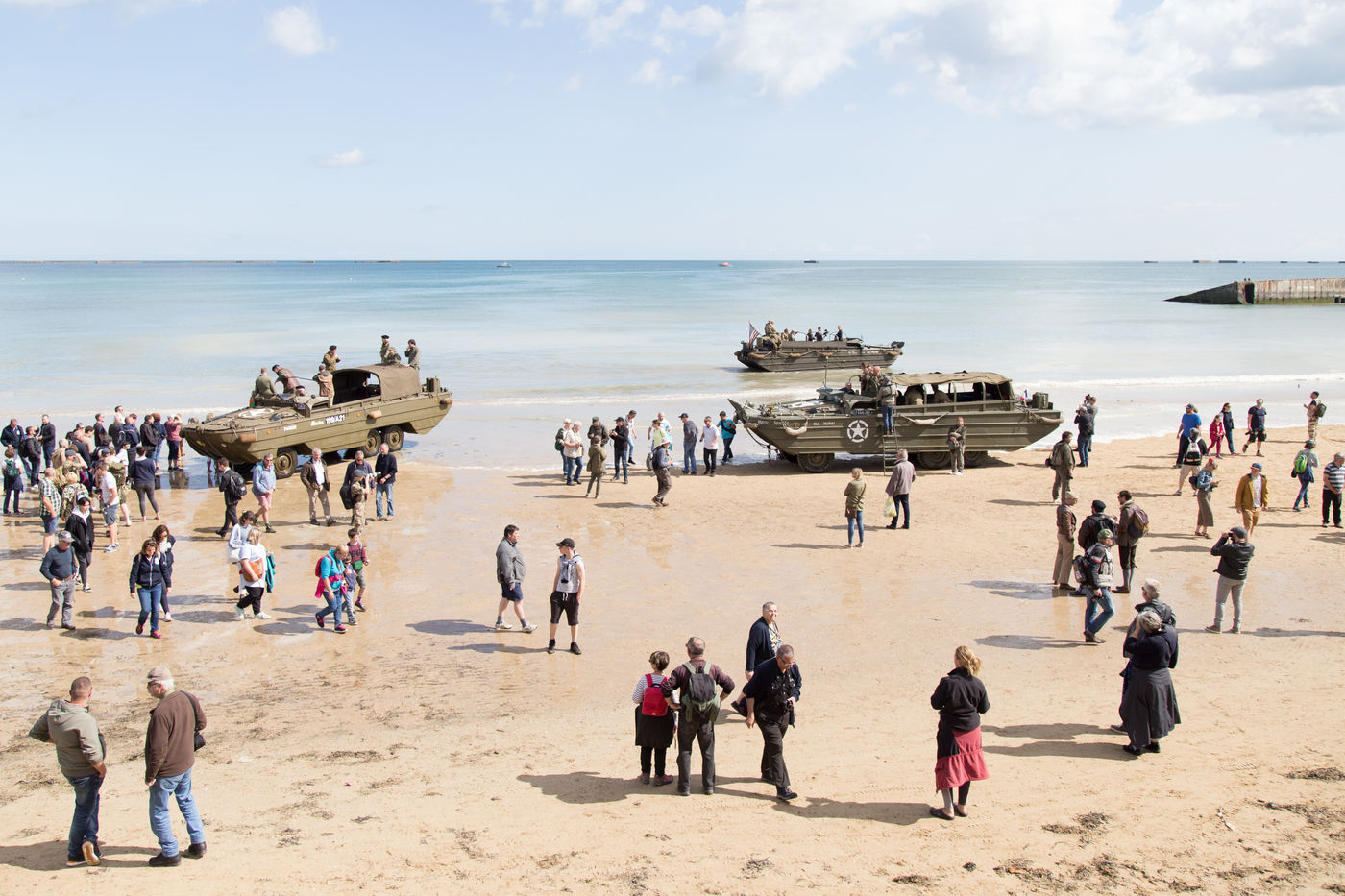 Malgré l'afflux touristique, comme elles, pour nombre de personnes, l'heure était au recueillement. Et pour se recueillir, il existe les musées, le port artificiel, ces petites croix plantées dans le sable et dotées de coquelicots, quelques empreintes de pas de soldats et autres monuments. Autant d'éléments qui ont modifié le paysage de ces grandes étendues de plage, plus ou moins durablement.