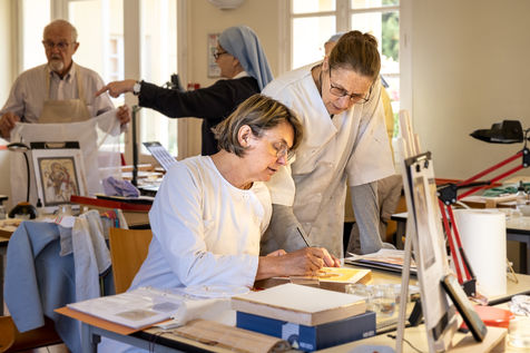 During the five days of the summer course, the brothers pray regularly with and for the retreatants, which favors the spiritual link that each person has with his own faith. In July, 16 beginners and confirmed students participated in the icon workshop. Magali Gay, supervisor at the Saint-Norbert workshop, also initiates the art of the icon throughout the year, one Saturday per month to work, pray and share.
