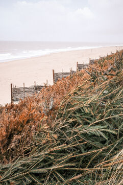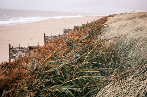 In Gouville-sur-Mer, famous for its iconic beach cabins, Christmas trees have been placed at the base of the dune for several years. Each year after the holidays, these trees are collected and then installed in March to strengthen the dune, thus contributing to the fight against rising waters.