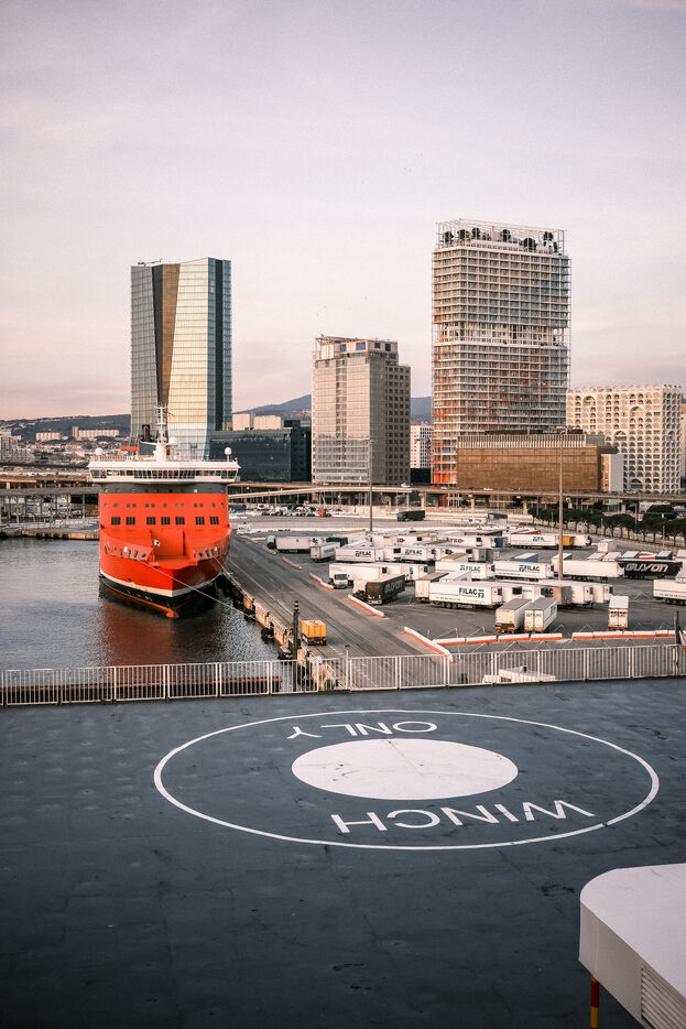 A poetic journey, departing by ferry at sunset from Marseille, an evening spent on the deck, a night in the cabin, and an arrival at the port of Propriano.
