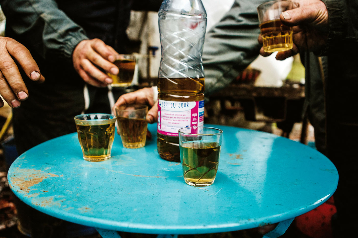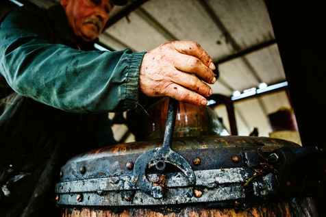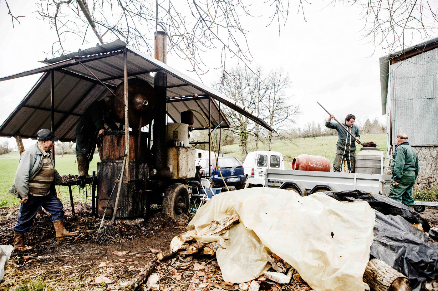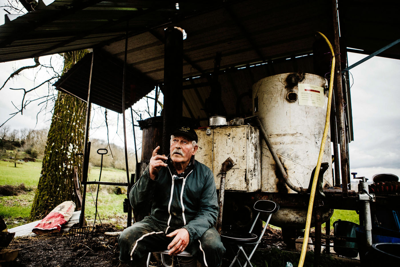 Le métier de bouilleur n'est pas de tout repos. Il faut aimer la boue, les herbes folles, les mains qui collent à cause du sucre qui dégueule de l'alambic en ébullition. Mais la chaleur des hommes, les poignées de main viriles au pied de la caravane et le respect de la parole donnée font oublier la pénibilité de l'ouvrage. Trente ans que l'alambic continue de siffler pour Roger Pompougnac.