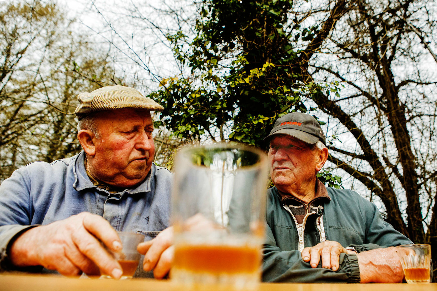 Roger Pompougnac, 77 years old, is a travelling distiller: he transforms fruit into alcoholic liquor like the alchemist turns lead into gold. Preceded by his still, he runs the countryside from October to May, passing from one hamlet to another without ever turning around. Customers everywhere are waiting for him with the same unashamed impatience. Roger, the Messiah, does not multiply breads, but litres of pear alcohol, grapes, cherries or even apple. Its rates have the advantage of being reasonable.