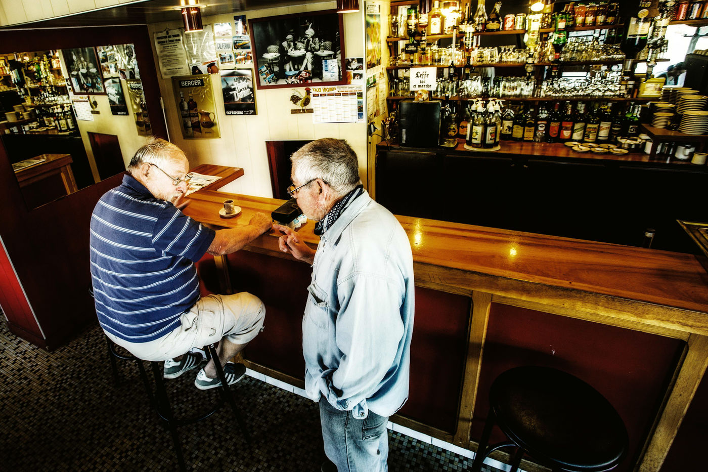 C'est un repaire de potes, un bistrot de copains planque a l'ombre d'une tranquille eglise romane. Kir pour Momo, biere pour Pierrot et pastis pour Jeannot : autour du comptoir, les habitues sirotent la vie au fond de leur verre opaque. Les plus bavards taquinent leur voisin : Macron, Juppe, Sarko, on refait le monde en attendant de payer sa tournee.
