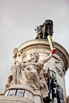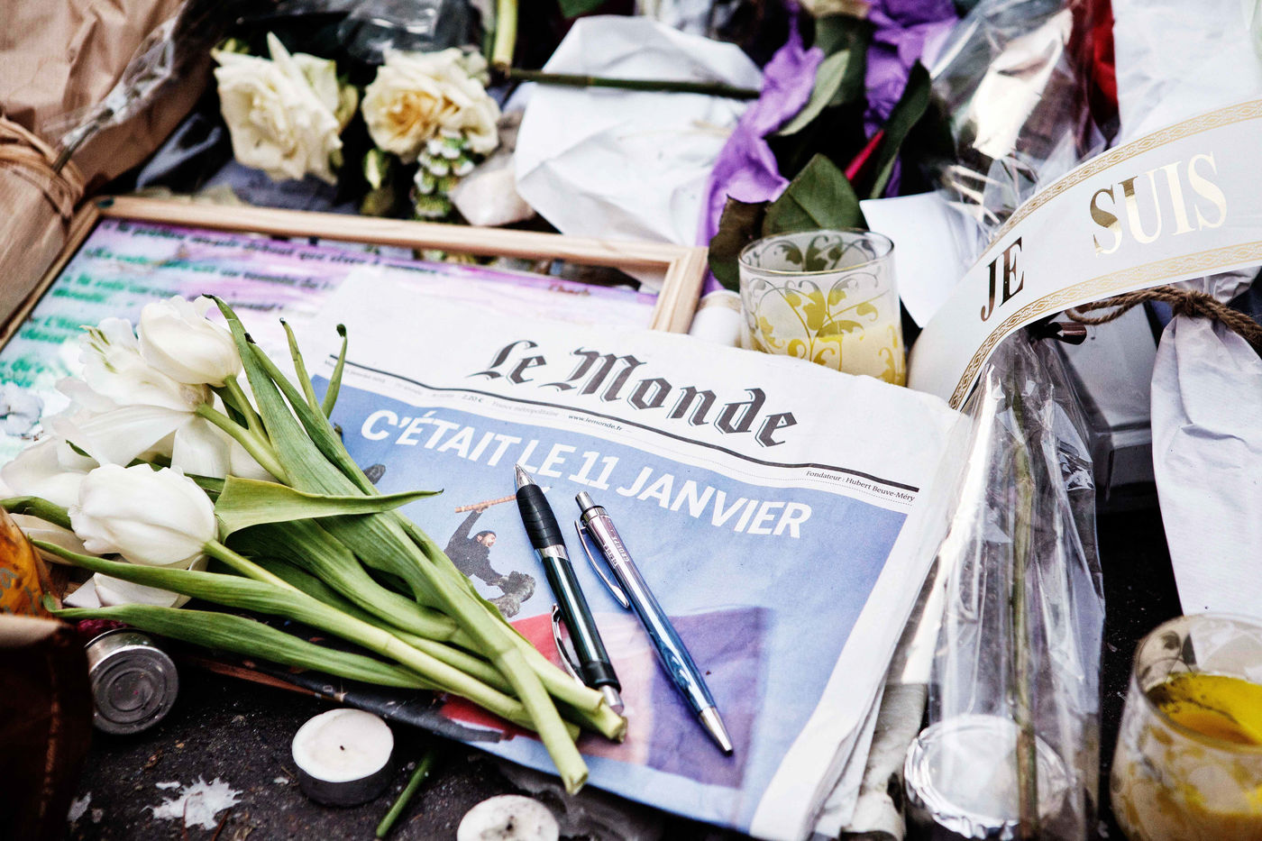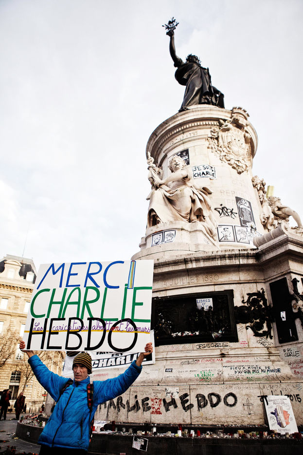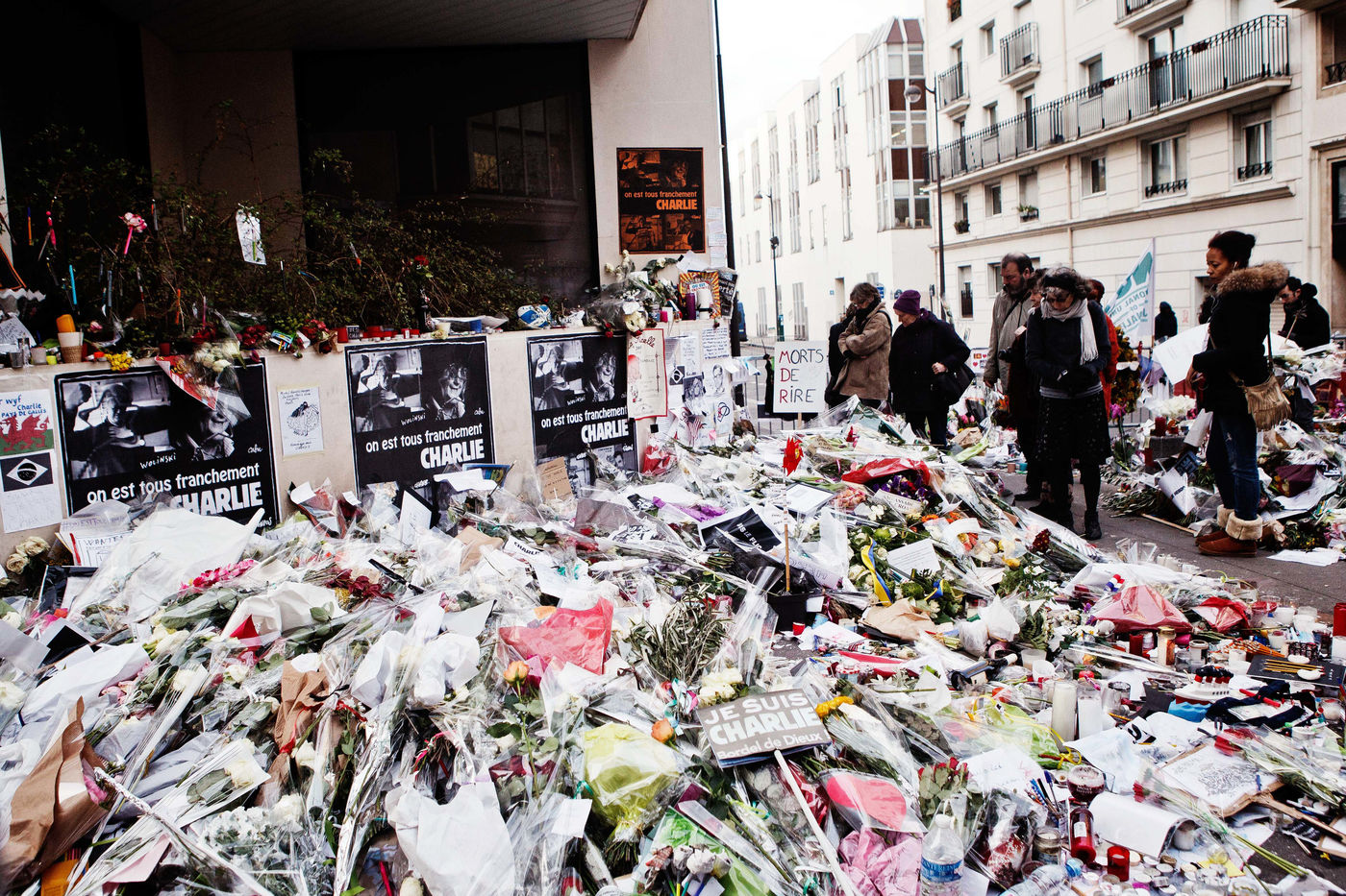 Hommage aux morts de Charlie Hebdo que ce soit dans les rues a proximite de la rue Nicolas Appert, siege de la redaction ou a eu lieu l attentat ainsi que place de la Republique.
