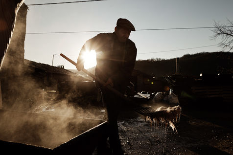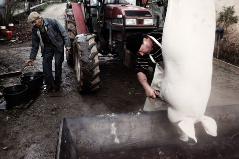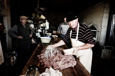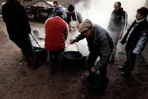 Leo raises 2 pigs all year round and every 2 years, he brings the killer and the whole family to kill the pig and make sausages, sausages, scraps, all this in a good mood!