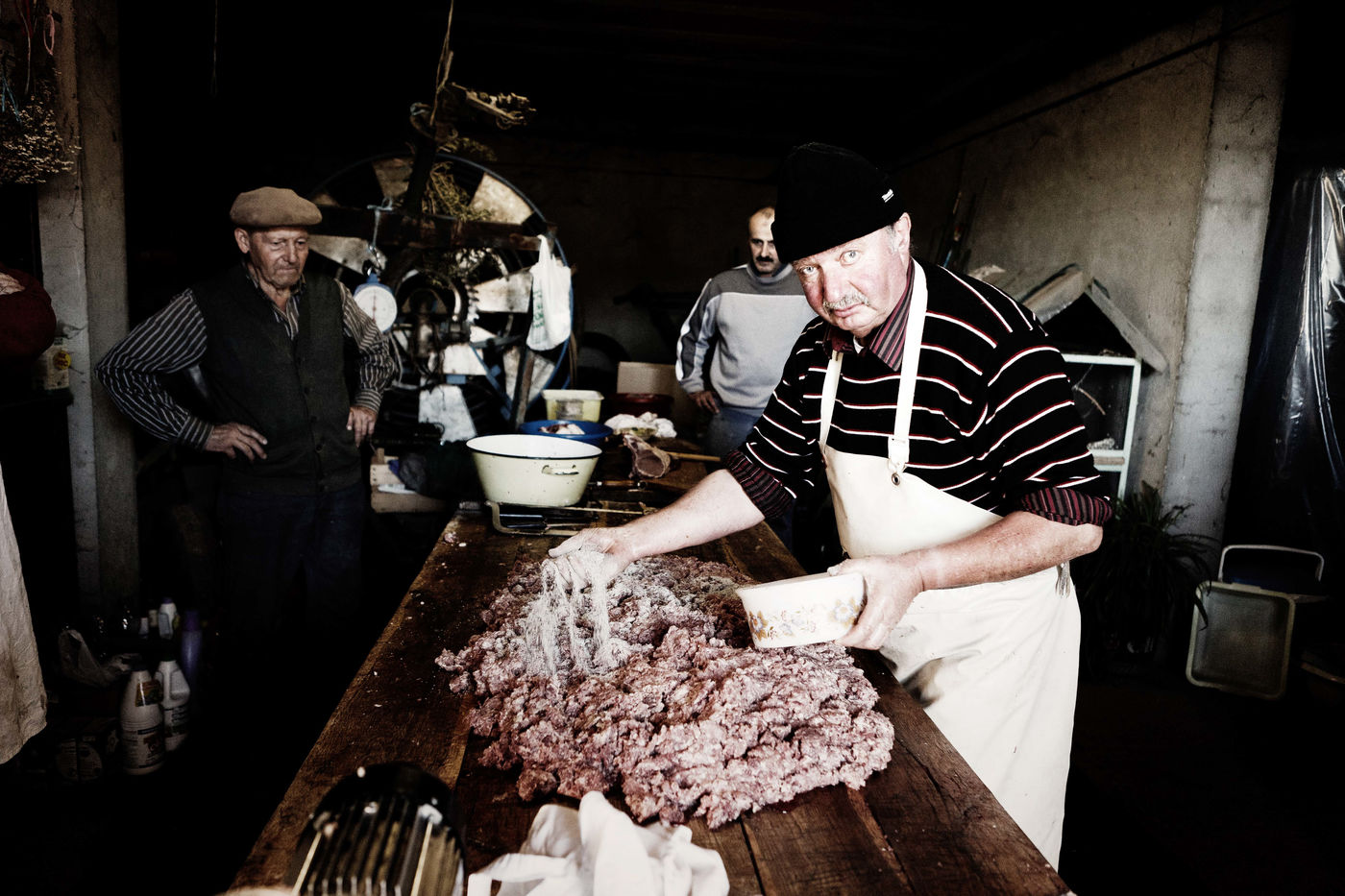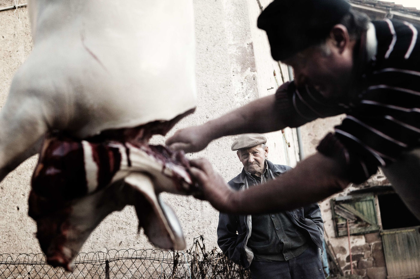 Leo eleve 2 cochons a l annee et tous les 2 ans, il fait venir le tueur ainsi que toute la famille pour tuer le cochon et pouvoir faire des saucisses, des boudins, des grattons, tout ceci dans la bonne humeur!