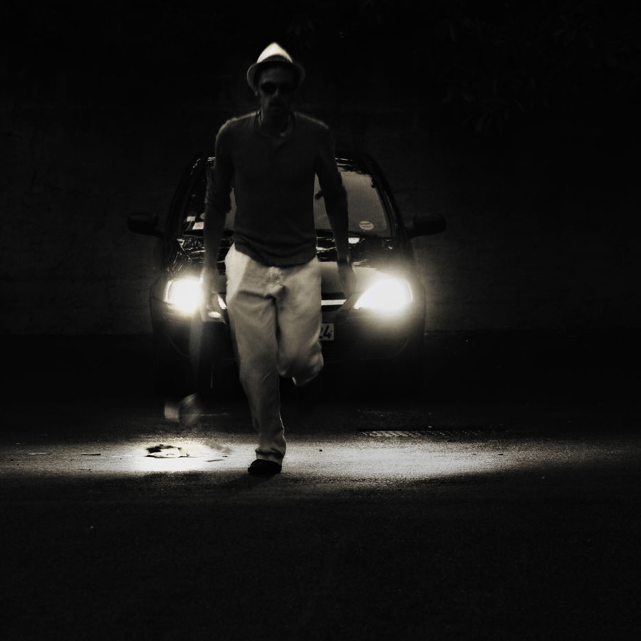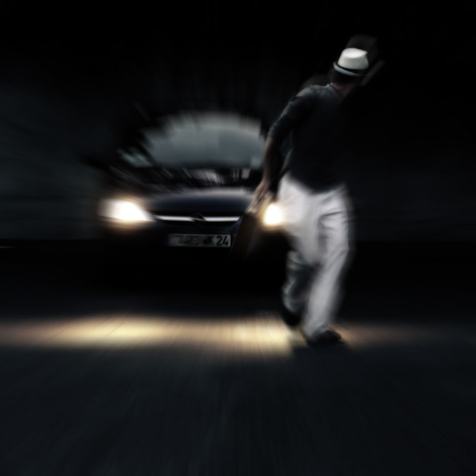 Young man fleeing with a car on his tail.