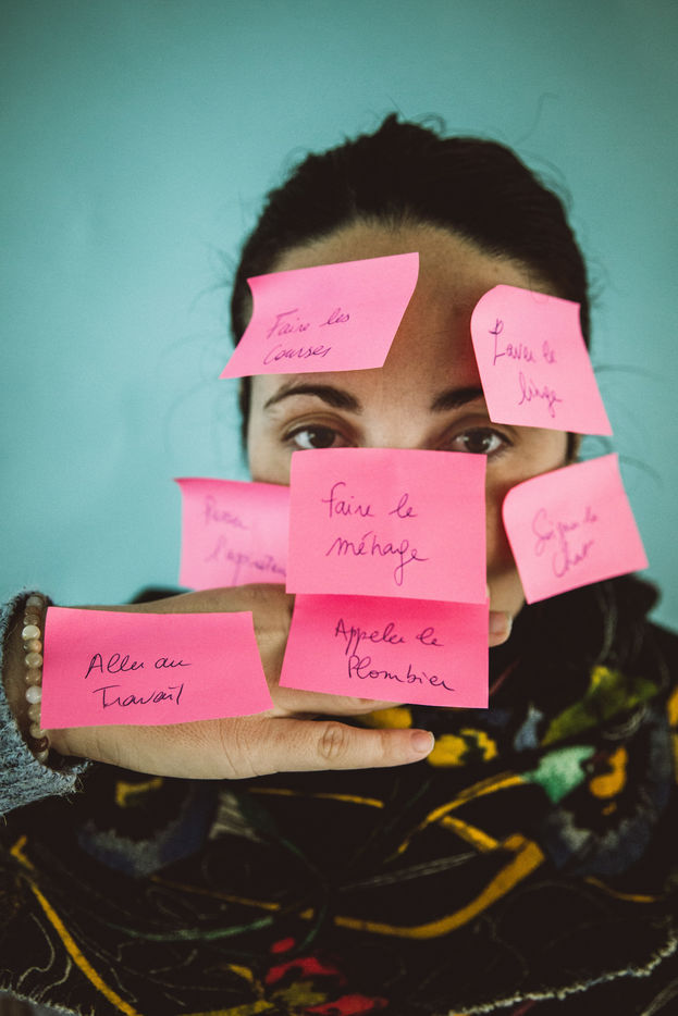 Illustration sur la surcharge mentale des femmes due a la gestion de trop de choses.