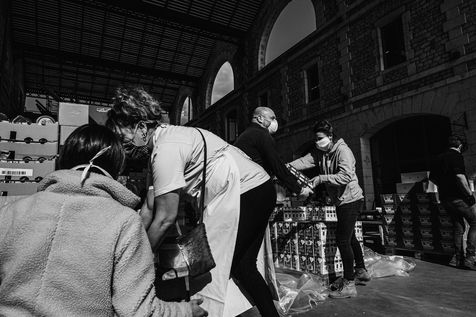 Migrant aid associations have been distributing food and basic necessities for several days in emergency in the squats of Bordeaux and its surroundings where many people have been confined since the appearance of Covid-19. Impressive logistics have been put in place with the participation of many volunteers. I was thus able to follow a team of the association Bienvenue in its distribution of food towards the Zone Libre, a place which shelters 80 families.