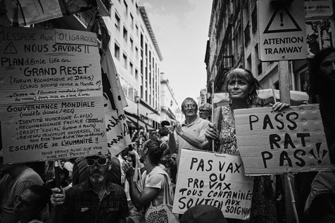 For 4 Saturdays now, a heteroclite cortege of demonstrators against the health pass has been marching towards the city centre of Bordeaux. Few yellow stars, but the slogans "liberté" and "Macron ton pass on n'en veut pas" are chanted by an impressive number of people, recalling the beginning of the Yellow Vests demonstrations.