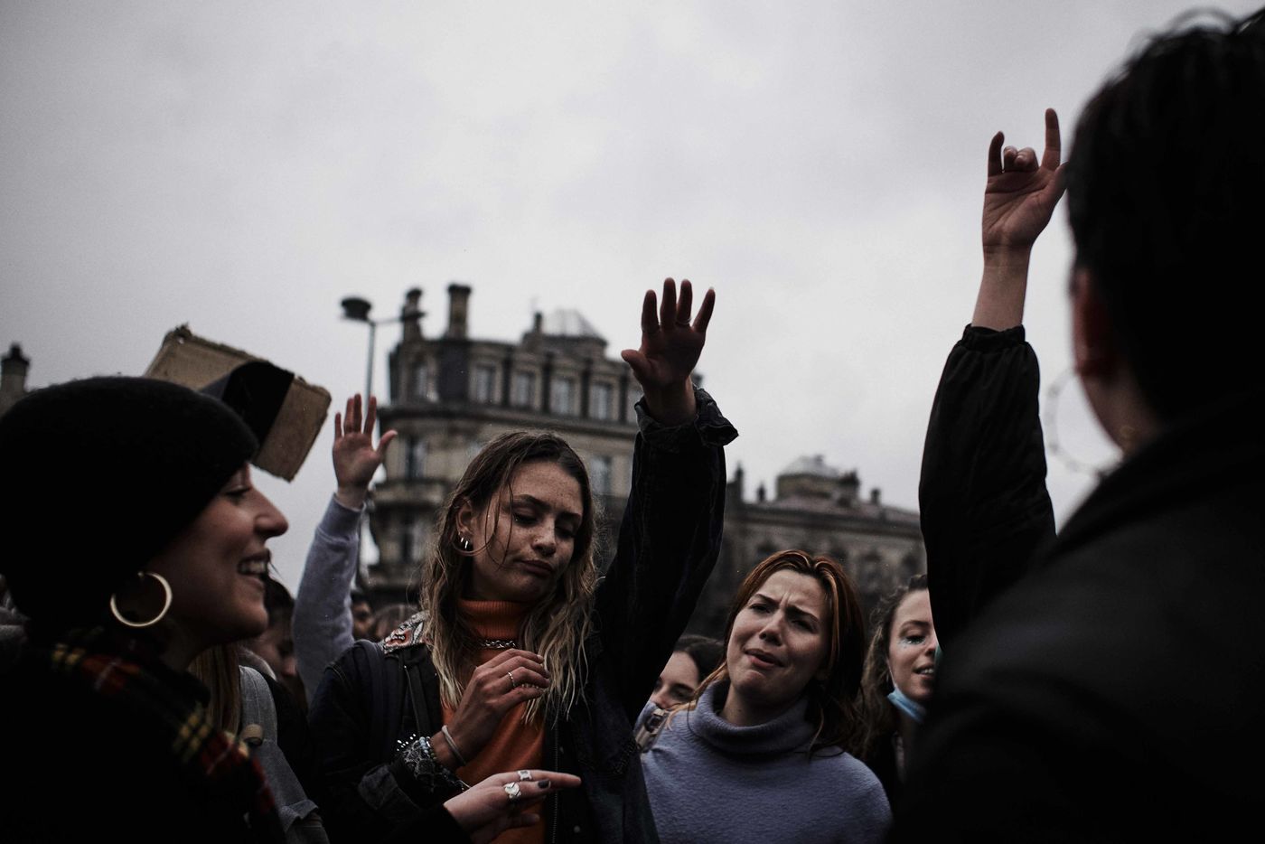 it is the 8th of March 2022 and the procession starts from the Place de la Comédie in Bordeaux and heads towards the Place de la Victoire. Once there, a sound system spits out music and despite the rain, a still dense crowd dances to end this day on women's rights.