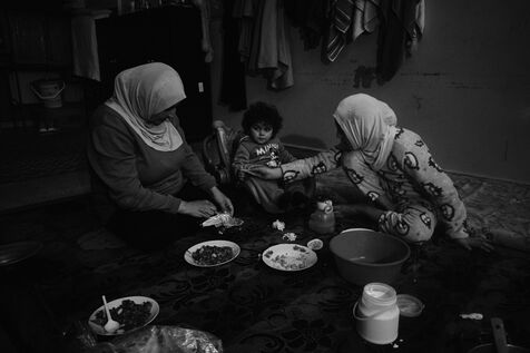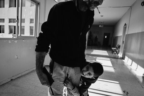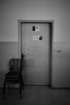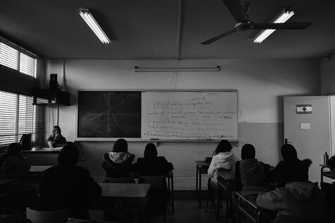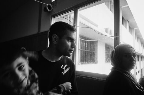 To get to the Tyre Technical School, we have to walk past the remains of an armoured vehicle dating from previous wars. One of the staff takes me into the classrooms on the upper floors. These are used as living quarters for the many families who fled their villages in southern Lebanon after the bombings by the State of Israel. Some families have been here for over four months now. Life there is more bearable, though still extremely precarious, thanks to the donations of many local citizens and international aid. The lives of the school's residents are punctuated by frequent power cuts. Here we find a gas stove for cooking with the neighbors, while in the adjacent room, several chichas sit in front of the large blackboard in the classroom. Despite the situation, the exiles try to maintain a semblance of social life, while the children race their scooters down the school's long corridors, their laughter punctuating the daily life of the inhabitants. In the neighboring Tyre Second School, the municipality no longer provides the necessary electricity supply, and the building is plunged into darkness all day long. Using a flashlight from a colleague's cell phone, the headmistress manages the school's administration and the many lessons given to the refugee children. The school still offers schooling for the children of families who have fled the south, in order to prevent them from dropping out and worsening their situation. A worn-out man also arrived 4 months ago after his house was bombed a few kilometers from the border. Like his room-mate, very old and seriously ill, he has no illusions about returning home. Capacities for obtaining medication are limited, and many are afraid of ending their days here. The sudden downgrading of these many border residents, who have lost everything in the space of a few hours, exacerbates tensions with a Lebanese state incapable of managing the crisis, and the looming shadow of a war that has yet to speak its name does nothing to ease the situation.