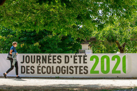 Rassemblement des ecologistes lors des journees d ete des ecologistes dans le parc de Blossac a Poitiers le 20 aout 2021.