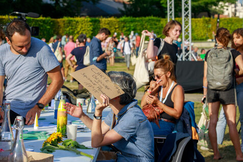 Gathering of ecologists during the Ecologists Summer Days in Blossac park in Poitiers on August 20, 2021.