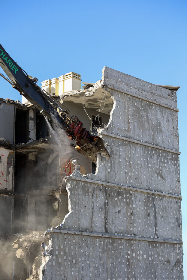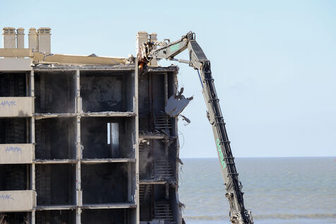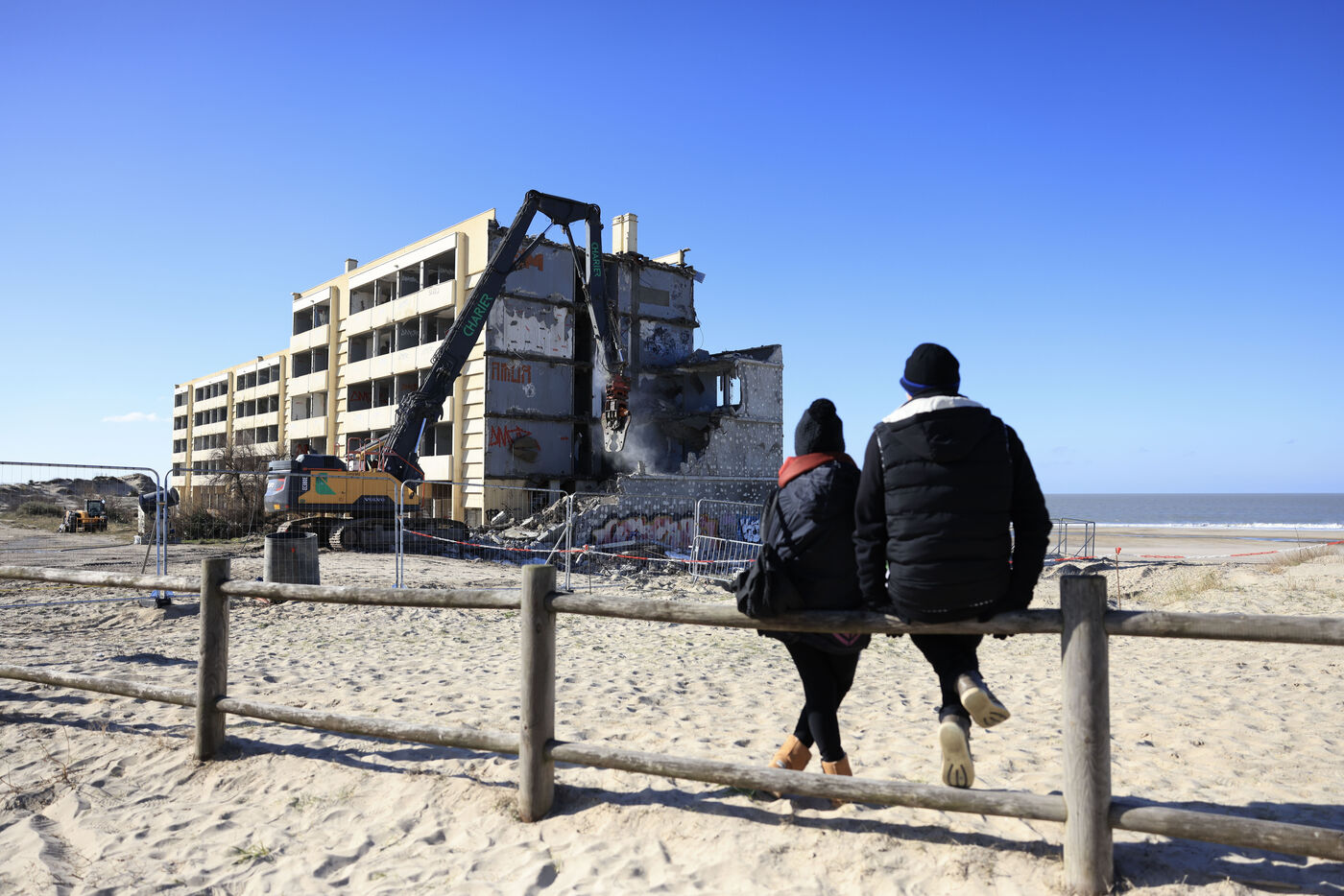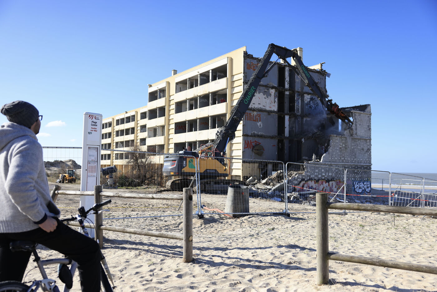 Demolition work begins on the Le Signal building, now a symbol of coastal erosion.