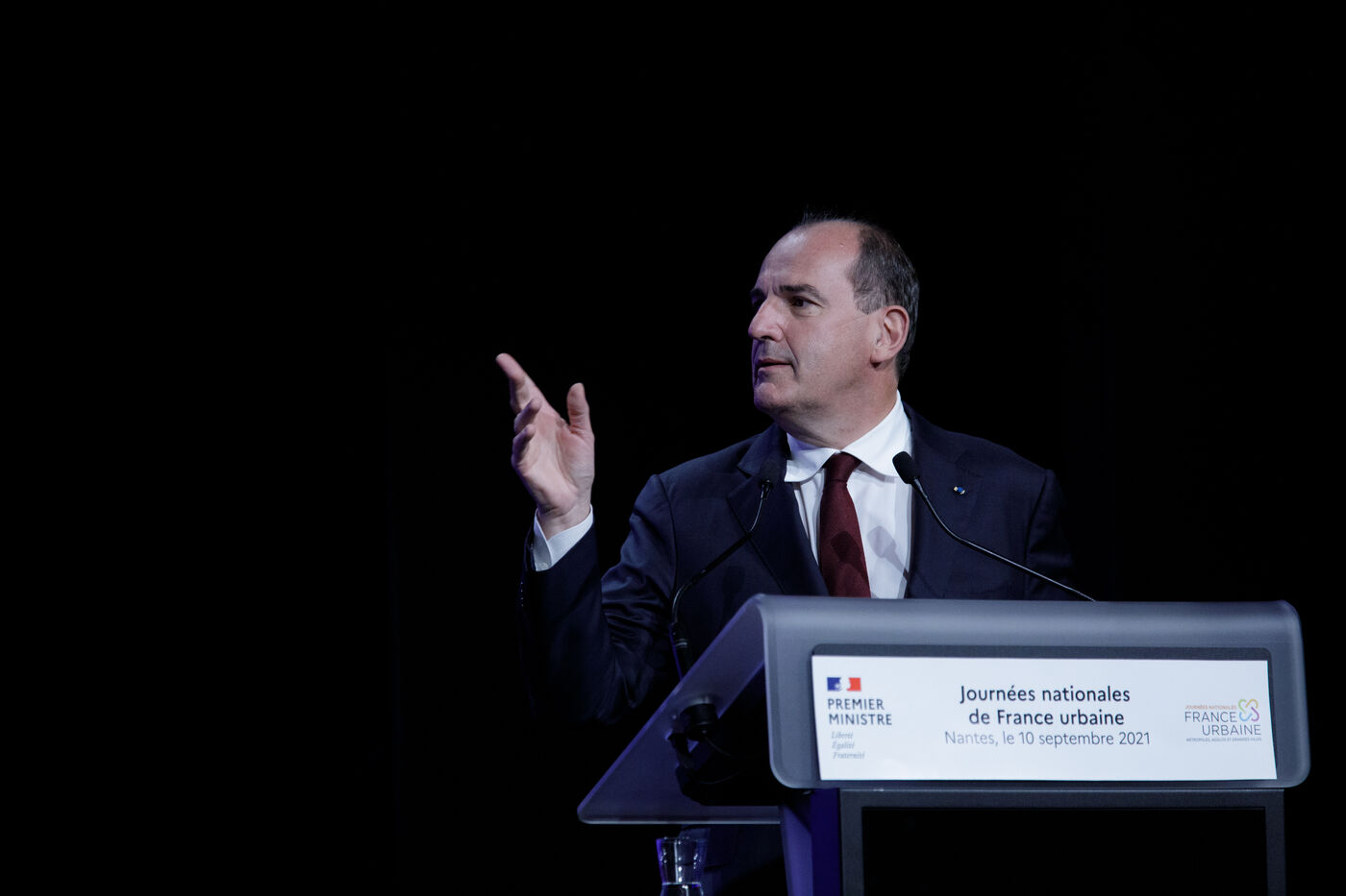 Jean Castex, Prime Minister, delivers a speech at the Journées nationales de l'association France Urbaine, Nantes, September 10, 2021.