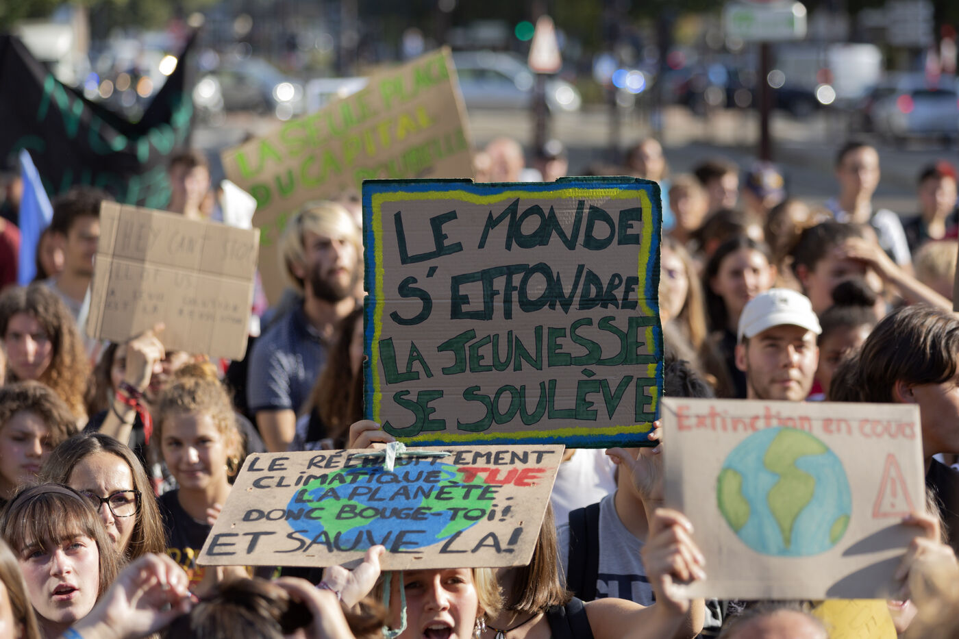 3eme greve des jeunes pour le futur. Les jeunes descendent dans la rue lors d'une greve globale en faveur du climat et contre le rechauffement climatique. Ils denoncent l inaction des politiques a la veille d un sommet exceptionnel de l ONU sur le climat.