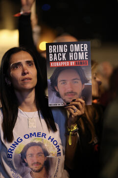 People gather in Tel Aviv s Hostage Square in support of those kidnapped by Hamas during the October 7 attacks before the release of the few hostages following negotiations and a ceasefire between Israel and Hamas