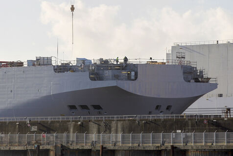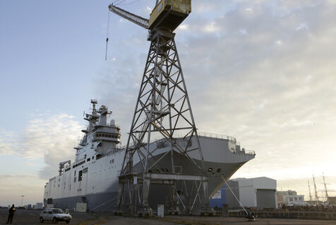 The Vladivostok warship, a Mistral-class helicopter carrier ordered by Russia, is pictured at the STX France shipyard in Saint-Nazaire, western France.