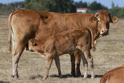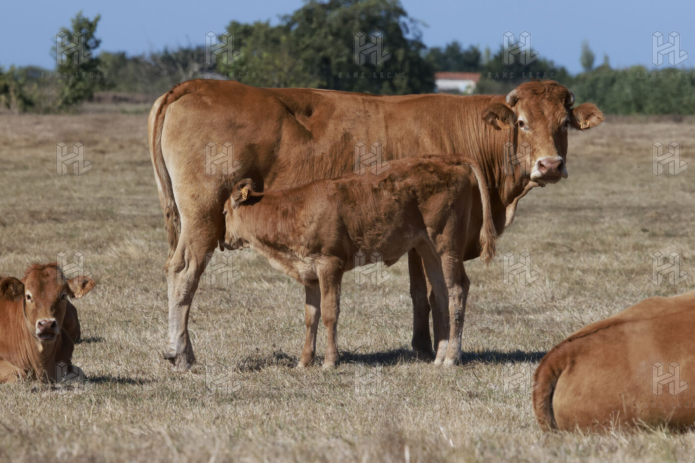 Cows and calves grazing in the middle of a drought in Loire-Atlantique on August 6, 2022.